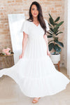 Our new Taylor is simply elegance at its best! With gorgeous features such as the modest v-neckline, shirred elastic waistband, tiered ruffle detailing on the maxi skirt, and the stunning ivory color; you're sure to turn heads wherever you go! This darling dress has stolen our hearts, make sure to get one before they're gone!