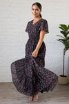 Our new Taylor is simply elegance at its best! With gorgeous features such as the modest v-neckline, shirred elastic waistband, tiered ruffle detailing on the maxi skirt, and the stunning radiant sunset color; you're sure to turn heads wherever you go! This darling dress has stolen our hearts, make sure to get one before they're gone!