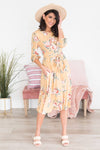 This simply perfect dress will be nothing, but darling on you! This beautiful floral pattern will definitely be a bonus to any wardrobe! We are so excited for the quarter sleeve length and tie waist on this Taysen!