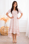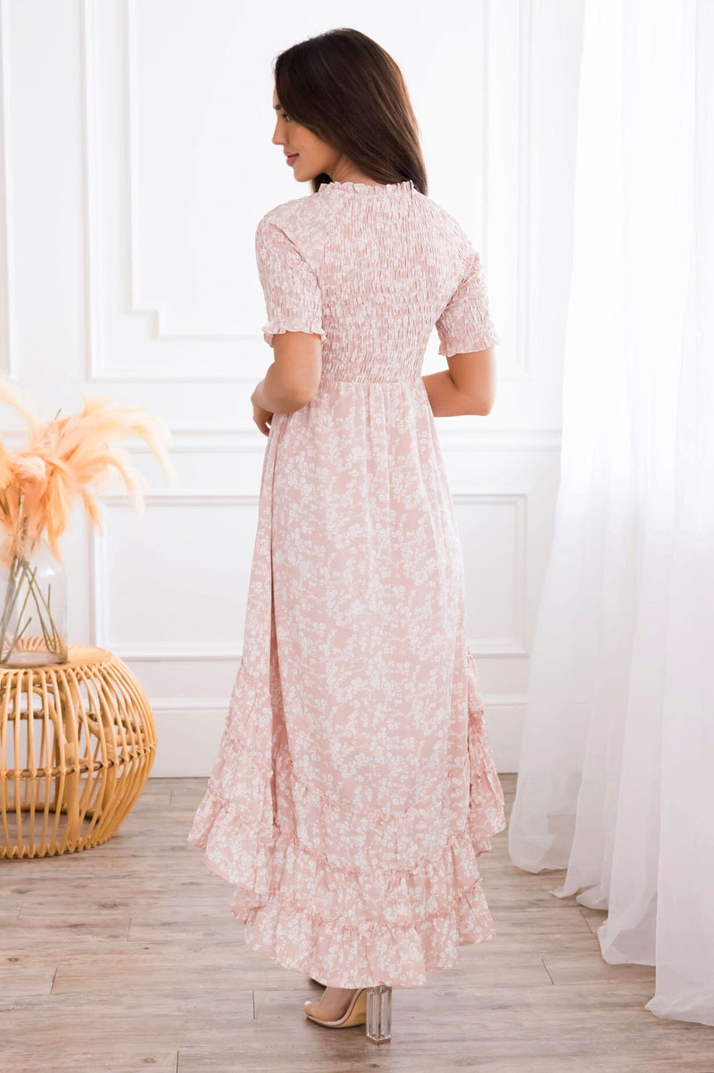 We are obsessed with the Tegan's lovely floral and pretty ruffled details! The smocked ruffled cross-over neckline and tiered ruffle high low skirt will steal your heart like it did ours! This feminine dress is a show stopper!