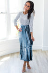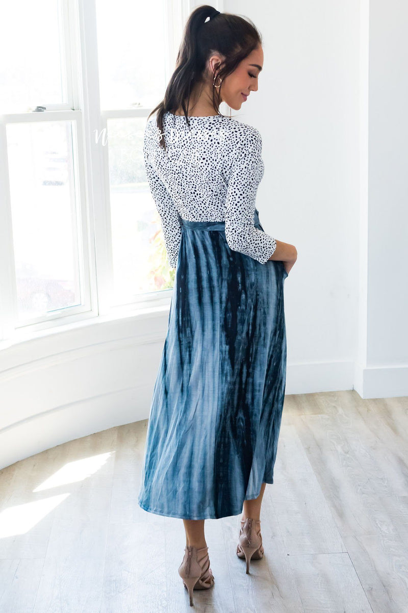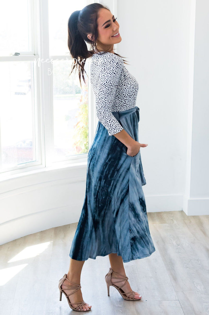 The Tennessee is here and we can hardly hold back out excitement! We love the feminine style and 3/4 length fitted sleeves! Also featuring a modest round neckline, elastic waist with belt tie, pockets and the perfect length modest skirt! Get yours today!