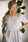 This gingham print is going to be a must have for your closet this Spring/Summer season! The Terilyn is the perfect mix between sassy and sweet. We adore the cute false button detail going down the bodice and the two deep pockets on the dress skirt are so stylish. This dress features a round neckline and a zippered back. Radiate some extra cuteness and pair with your favorite wedges or heels!