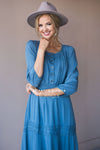 The Tess has arrived and in the most gorgeous fall shade! Stunning crochet lace detail throughout the bodice and skirt has got us hooked! Once you see this piece you are going to fall in love! The Tess, features a round neckline with functional buttons down the bodice, elastic waist, 3/4 length puff sleeves and comes fully lined.