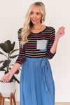 *Please note due to the style of this dress, all stripes may not line up exactly even in all areas. This dress is not eligible for exchange due to stripe placement.