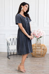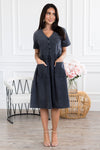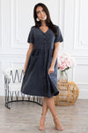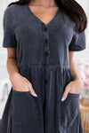 Wow! Say hello to this gorgeous new Tierney! This beautiful black acid wash dress has so many stunning features, such as a v-neckline with functional button front bodice, short sleeves, and a perfect for Summer length! This dress is a must have so add to cart now before they are gone!