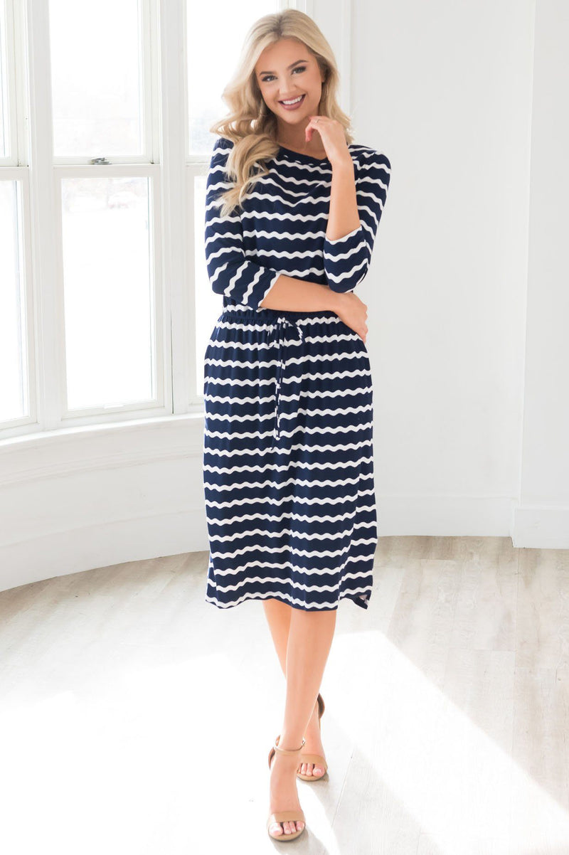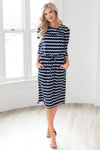 Are you looking for the cutest comfiest dress out there? No need to keep looking we have the perfect dress for you! Our Tierra is going to keep you stylish and cozy all day long with its extremely buttery soft material. It also features a round neckline, 3/4 length sleeves, elastic waistband with faux tie detail and it has pockets!