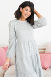 The Timber is the perfect dress for you! We are obsessed with the darling delicate embroidered floral bouquets throughout this mid-length tiered dress. This gem will be perfect for day to day wear or for an evening out!