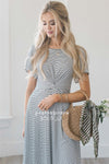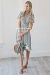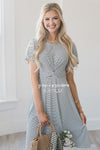 The Tonya is the perfect every day dress! Dress is up or dress is down you cannot go wrong! This white and black striped dress features a twist front with short flutter sleeves