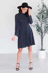This long sleeve midi is as cute as they come! There is nothing not to love about this casual comfy beauty! Featuring long sleeves, a mock turtleneck, comfy cozy sweater material, and a beautiful charcoal grey color! Get this gorgeous dress before it's gone!