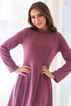 This long sleeve midi is as cute as they come! There is nothing not to love about this casual comfy beauty! Featuring long sleeves, a mock turtleneck, comfy cozy sweater material, and classy dusty plum color! Get this gorgeous dress before it's gone!