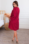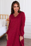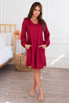 This classy v-neck swing dress is as cute as they come! There is nothing not to love about this casual comfy beauty! Featuring long sleeves, comfy cozy sweater material, pockets and a beautiful heather burgundy color! Get this darling dress before it's gone!