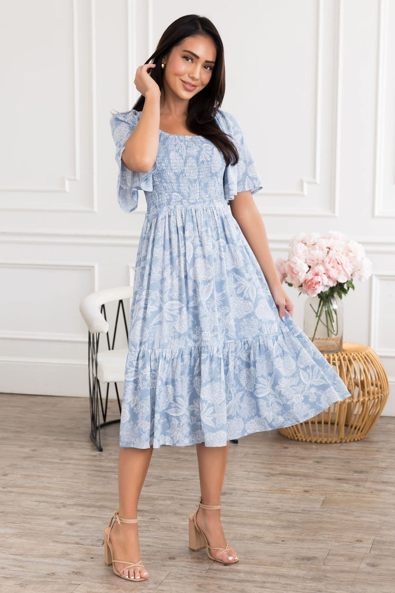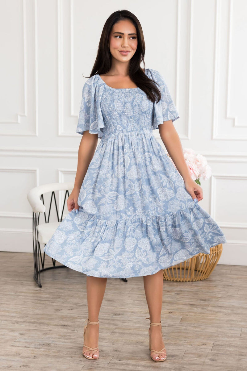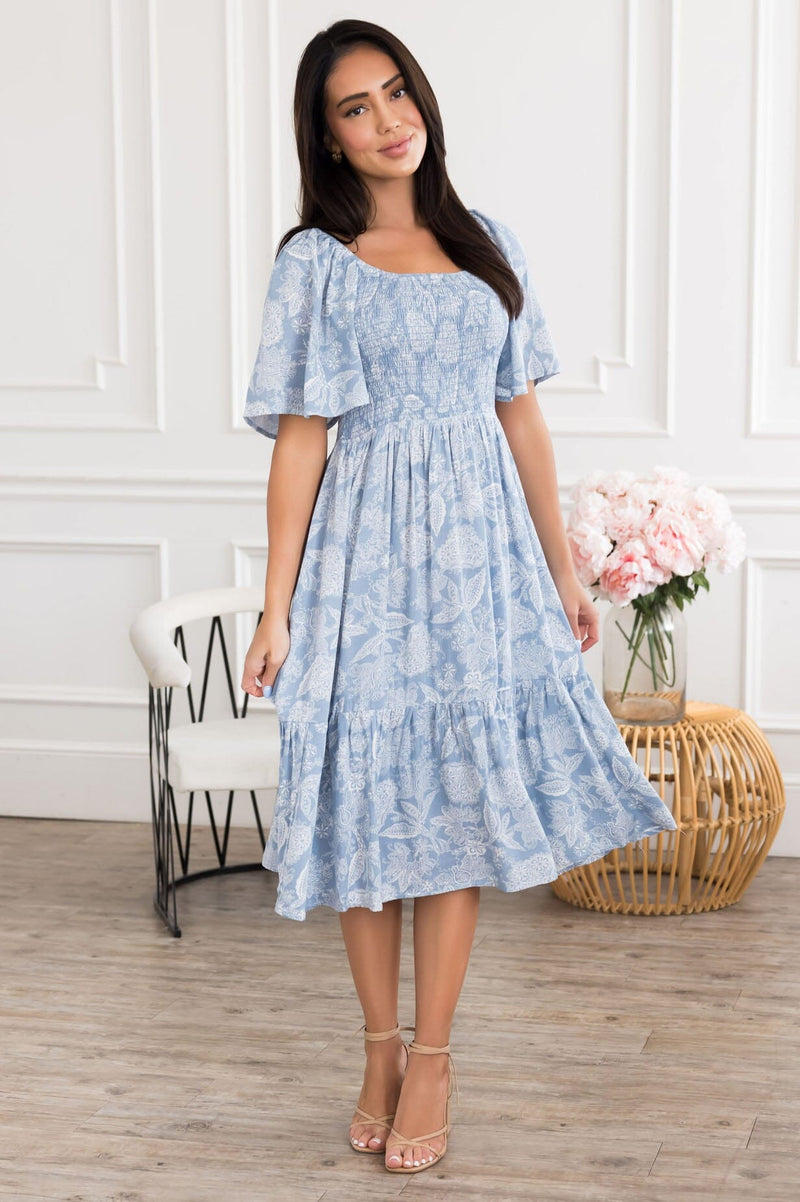 Hello cutie! Our new Tulum dress is a to die for floral print and is perfect for all things Summer! Features a flattering cozy smocked bodice, flutter sleeves, and a flowy perfect length ruffle hem skirt. Get yours before they are gone!