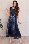 This is one dress you will not want to miss out on! The glistening sequin gown is sure to be unforgettable! We are just captivated by the stunning modest fit, fabulous short ruffle cap sleeves, and the ravishing free flowing maxi skirt! How absolutely dazzling!