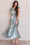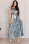 This is one dress you will not want to miss out on! The glistening sequin gown is sure to be unforgettable! We are just captivated by the stunning modest fit, fabulous short ruffle cap sleeves, and the ravishing free flowing maxi skirt! How absolutely dazzling!