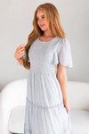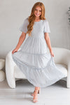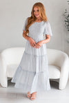 We have fallen hard for the new Valora dress! This flowy and oh so feminine dress is a serious must have! Featuring short flutter sleeves, smocked bodice and a sheer flowing ruffle tiered skirt. Get yours today!