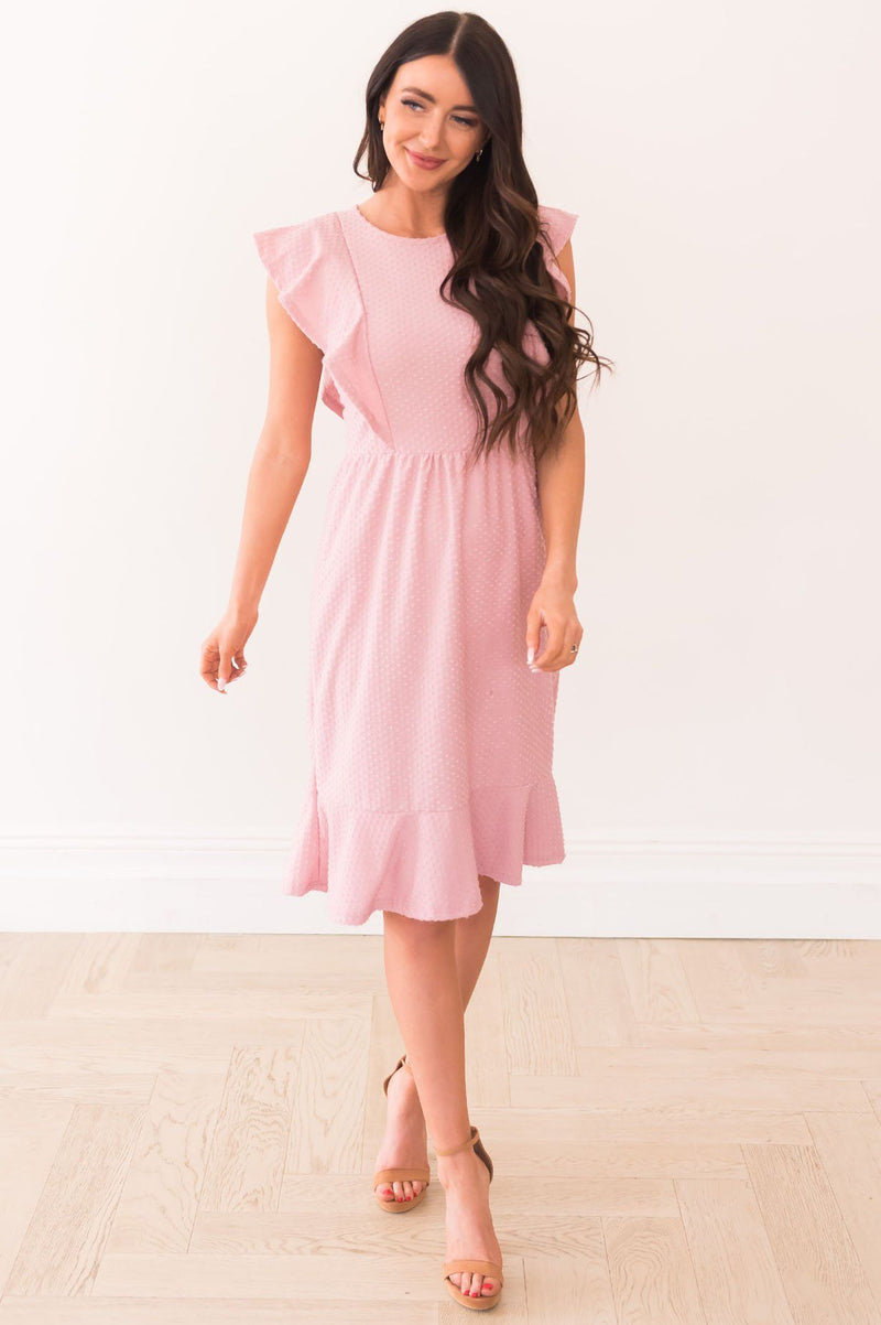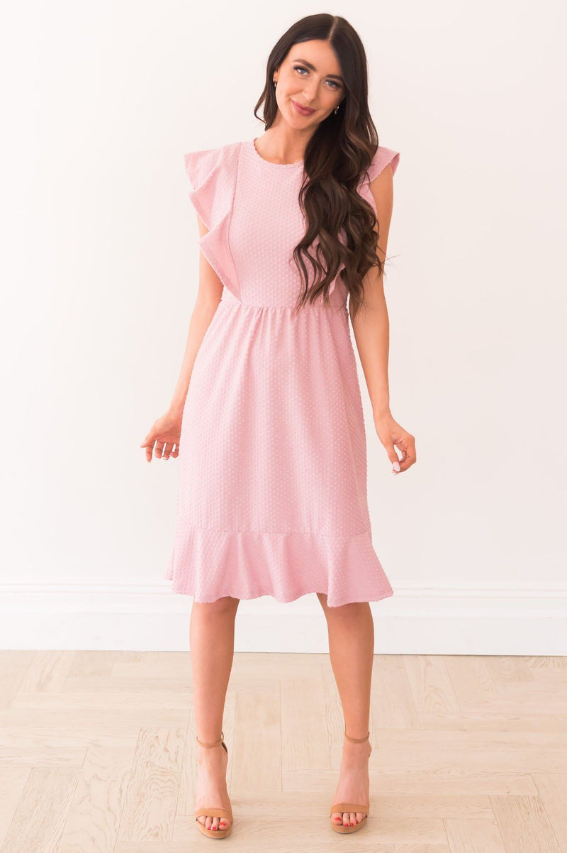 This darling new swiss dot dress is bound to steal you hearts! We are so in love with the soft swiss dot material, flutter sleeves and perfect length flutter hemline. This gorgeous beauty is the perfect Easter dress!