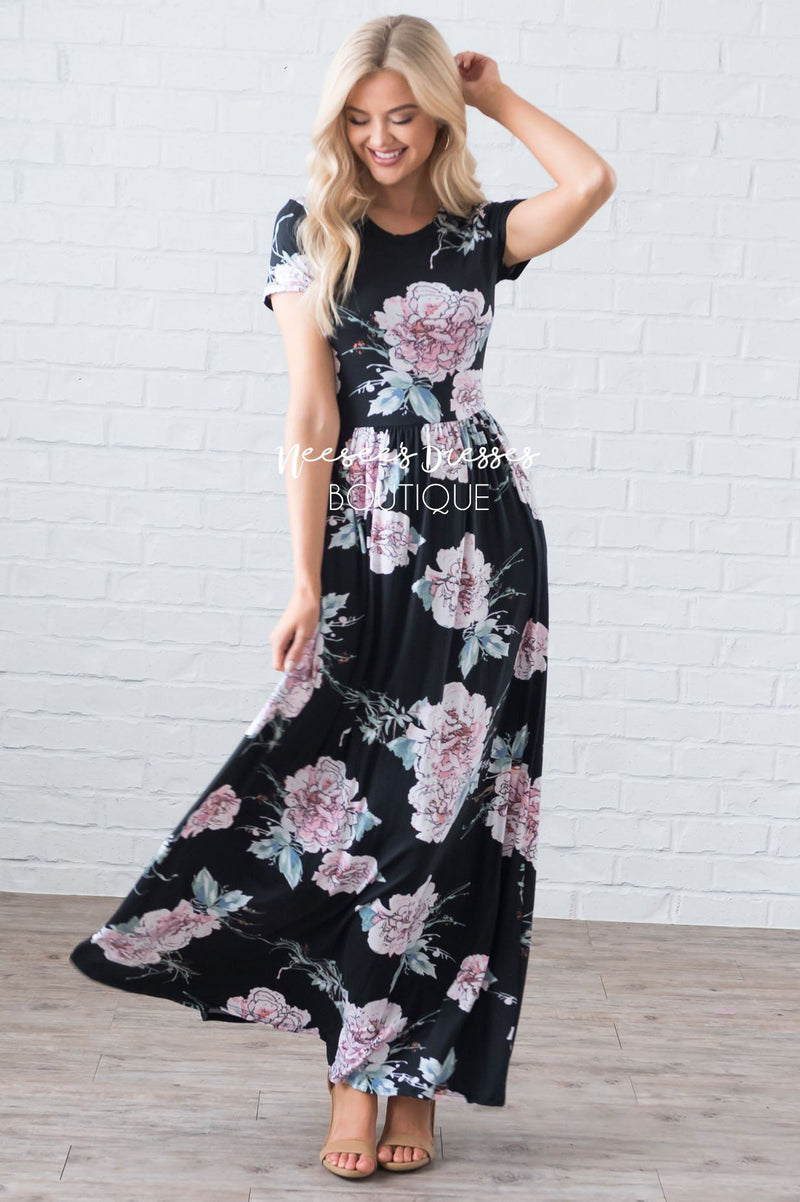 This modest beauty checks all the boxes! Soft, classy, perfect for any occasion! Get yourself the Vella today! Maxi dress features as always, modest length in a gorgeous flowy skirt, round neckline, fitted bodice & shorts sleeves. Simply our new favorite floral!