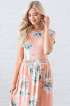 This modest beauty checks all the boxes! Soft, classy, perfect for any occasion! Get yourself the Vella today! Maxi dress features as always, modest length in a gorgeous flowy skirt, round neckline, fitted bodice & shorts sleeves. Simply our new favorite floral!