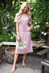 Who doesn't love having a dress that feels like you are hanging out in your pjs all day?! The material is a dream and you will never get uncomfortable in this piece. Other things to love about the Verona include a round neckline, dolman sleeves, elastic waistband, false drawstring tie detail and it has pockets! Plus how perfect is this shade for summer!