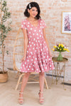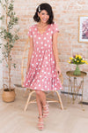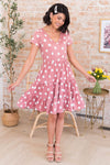 The perfect little polka dotted cutie has arrived! This lovely dress is perfect for you, trust us! Features include darling soft v-neckline, short sleeves and a flowy tiered skirt! We promise these will go fast, add to cart today!
