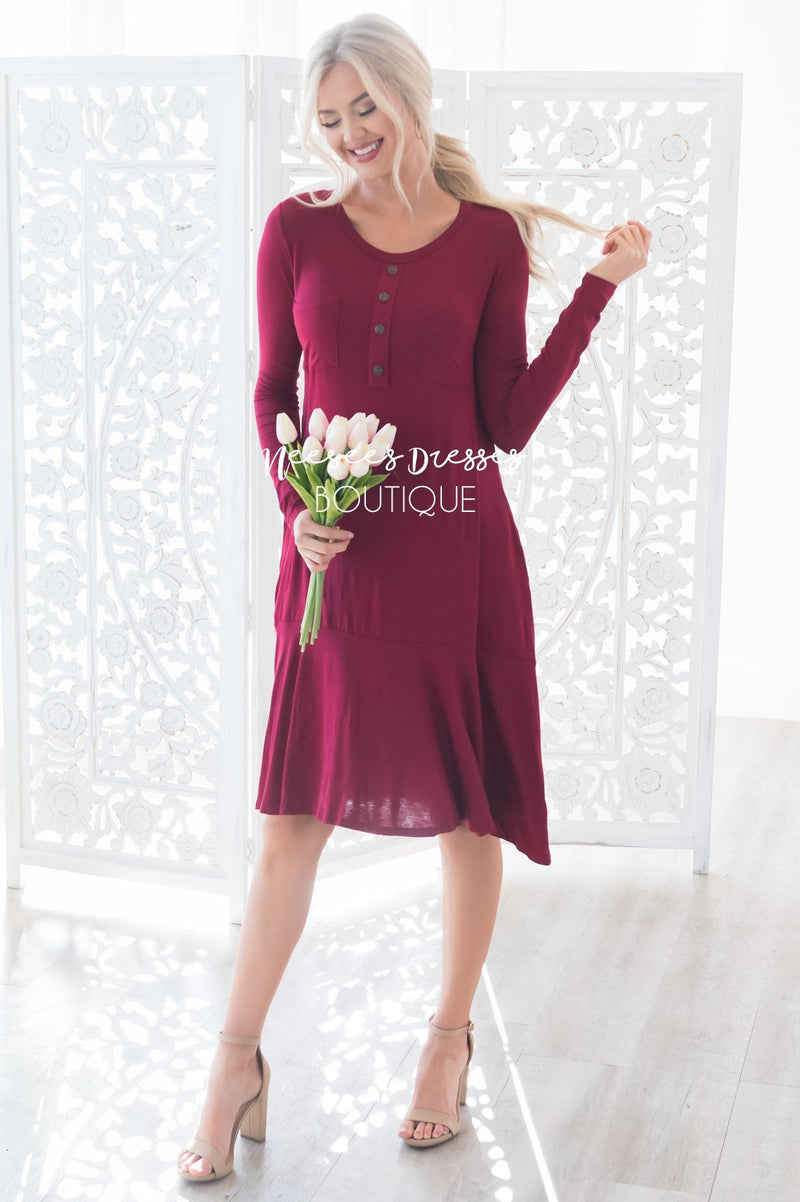 This modest beauty checks all the boxes! Soft, classy, perfect for any occasion get yourself the Vivianna today! Dress features as always, modest length, round neckline with button front, perfect length long sleeves and front pockets. Get yours today before they're gone!