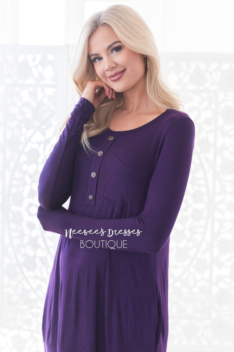 This modest beauty checks all the boxes! Soft, classy, perfect for any occasion get yourself the Vivianna today! Dress features as always, modest length, round neckline with button front, perfect length long sleeves and front pockets. Get yours today before they're gone!