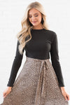 The Wendi has stolen our hearts! From the darling leopard print skirt, to the belt tie waist and long sleeved ribbed bodice with the most darling button detail on the sleeves. We simply can not get enough of this little dress! Get yours today before these beauties are gone for good!