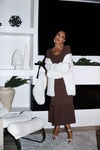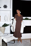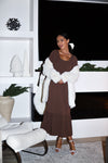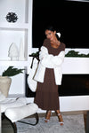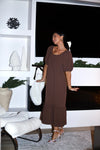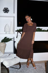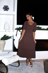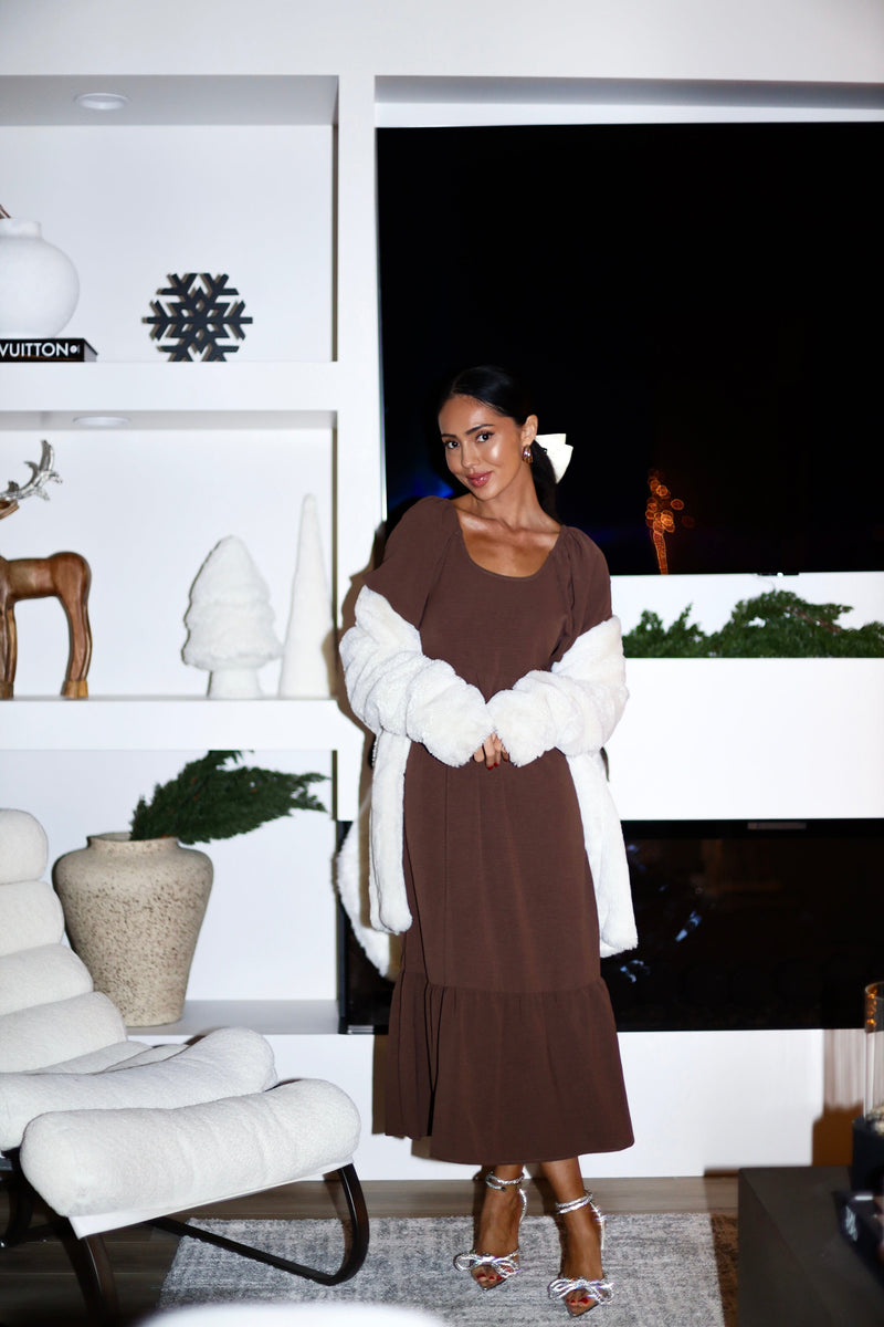 The dreamiest of dresses has just arrived! The chocolate Willough is the perfect dress for any season! Features include, short puff sleeves, modest round neckline and the perfect length flowy ruffle hem skirt. Get yours before they are gone!