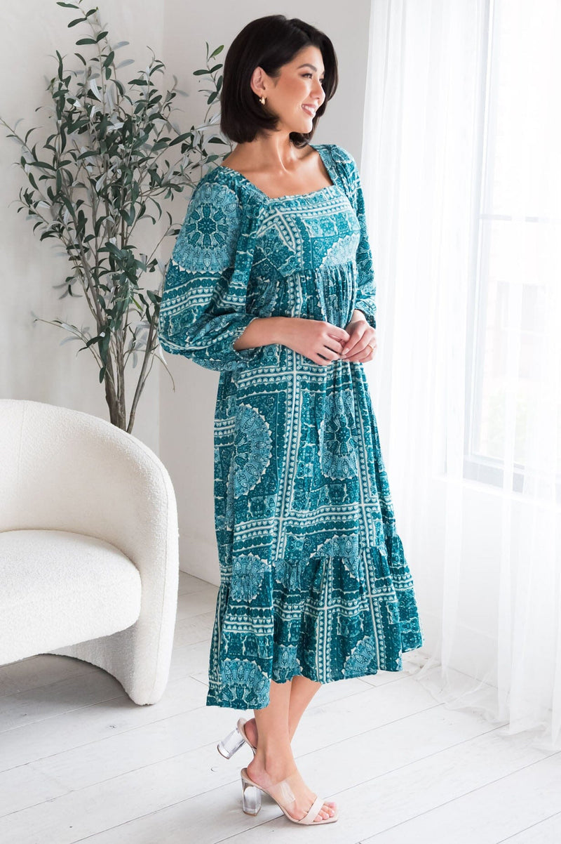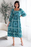 We are so excited to bring you the new Winston! This darling mandala print dress is bound to make an impact on your wardrobe! Features include a modest square neckline, long flowy sleeves and a ruffle hem skirt. Get yours today!