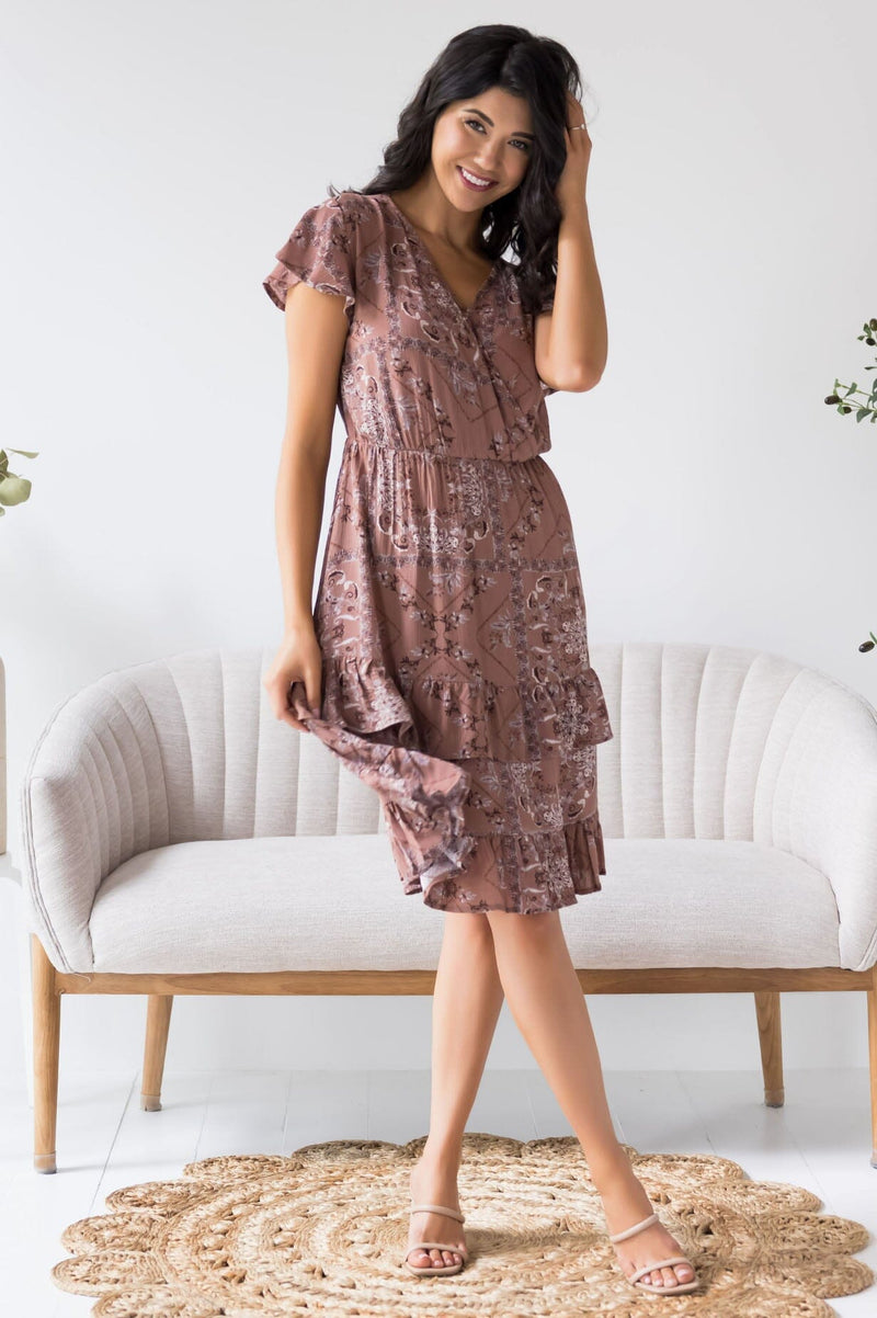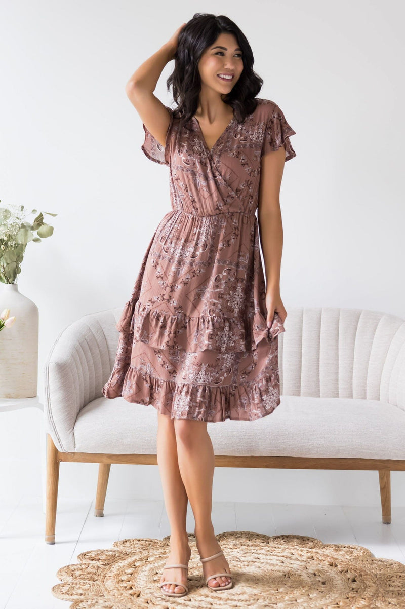 The dreamiest of dresses has just arrived! The ruffled Wrenolds is the perfect dress for any season! The perfect combination of feminine patchwork floral and ruffled details, it is sure to sell out fast! Features include, short flutter sleeves, cross-over bodice with flattering elastic waistline and flowy ruffle tiered skirt.