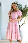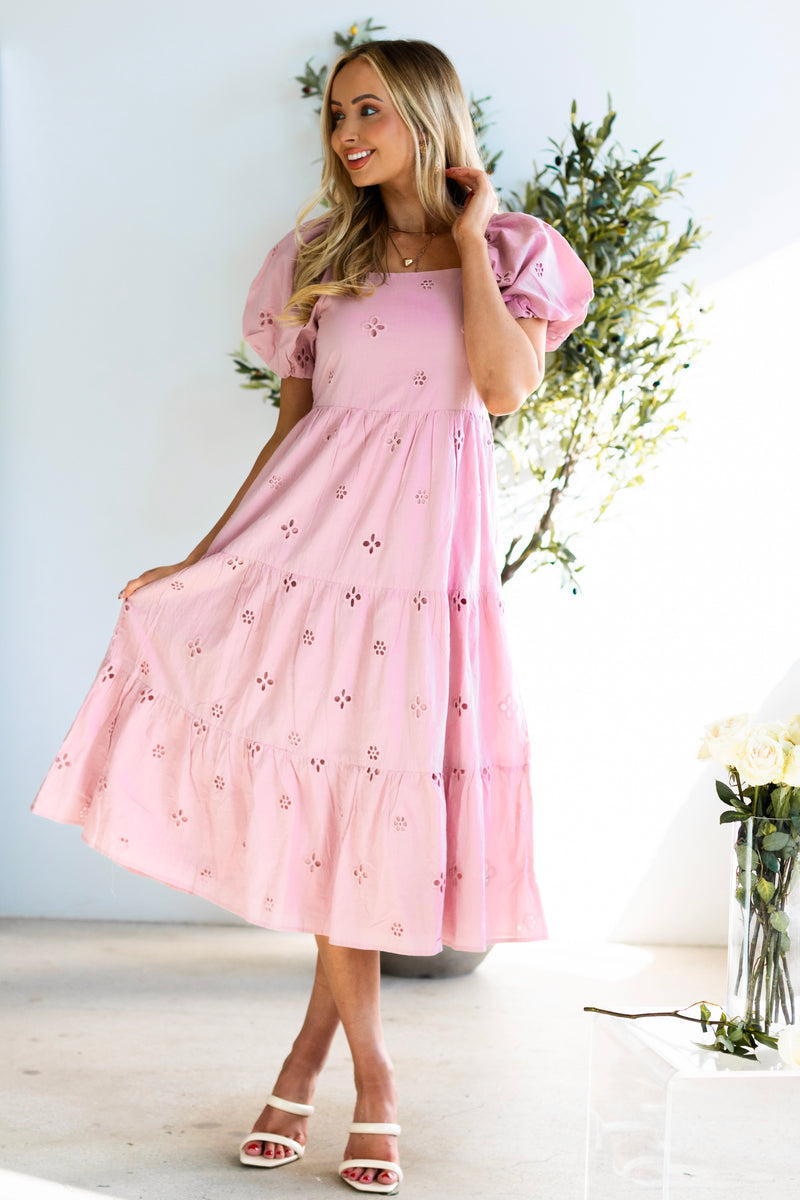 We are so in love with eyelet dresses for Spring! The darling Wynelle is so flowy and twirl-worthy, it's just begging to be in your wardrobe! Features a modest squared neckline, short bubble sleeves, slip on style with elastic backing and flowy feminine tiered skirt. Get yours before they are gone!