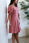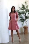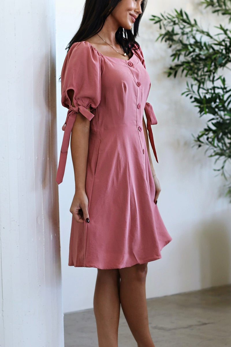 The Wynndi is a breathe of fresh air! This lovely perfect for everything dress is an add to cart now kind of dress! Featuring a lovely dusty rosewood color, modest squared neckline, tie detailed puff sleeves, functional button front, pockets, and perfect length skirt. Get yours today!