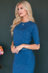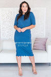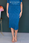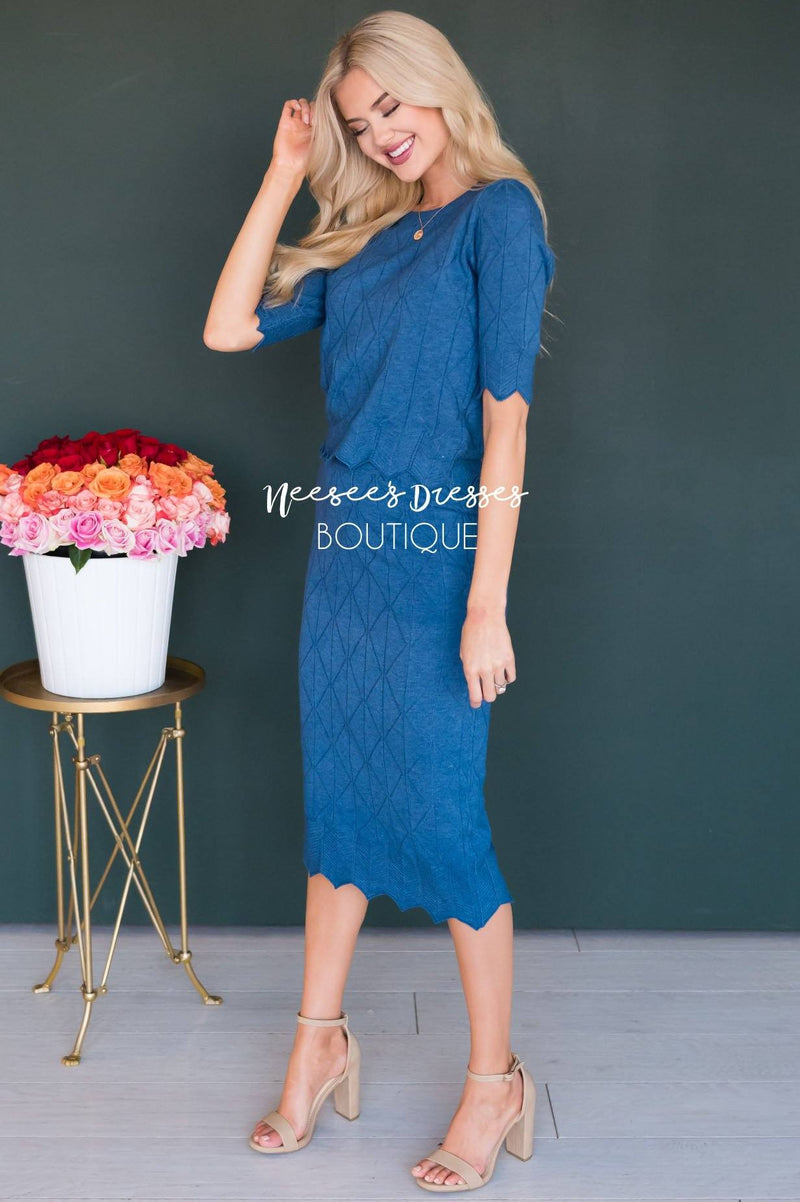 Sweater dresses are our favorite! So warm and classy at the same time! We especially love the Tinsley because it's a two piece so you can mix and match your heart out! Featuring separate sweater top with the softest material, half sleeves, super flattering separate long modest pencil skirt, wide elastic waist band and pockets. We also, can not get over the lovely toasted blue color for the upcoming season! This dress is going to be a hit, get yours quick!