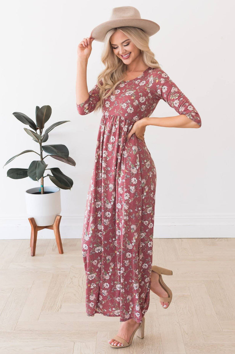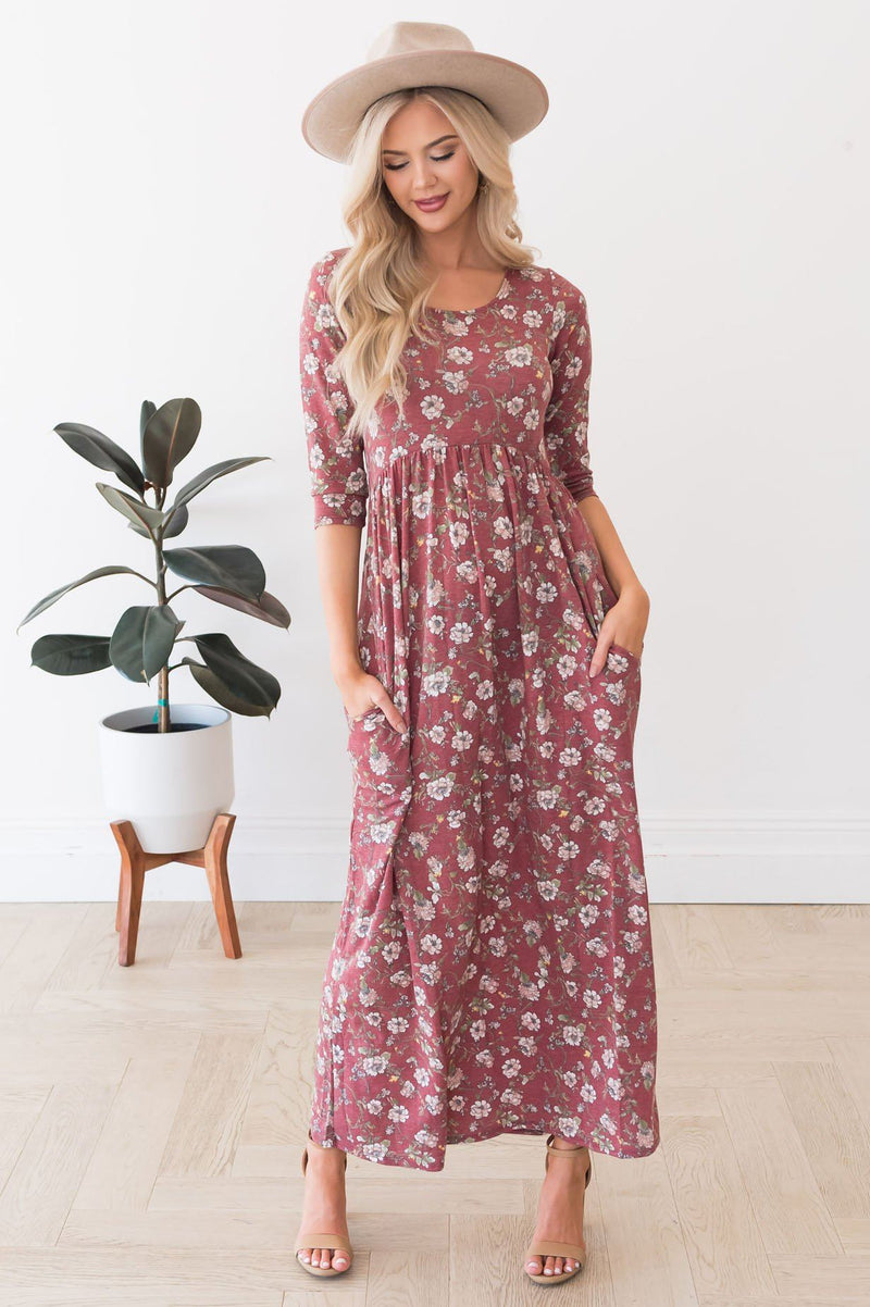 The Yara simply had us smiling from the second we spotted this beauty! This lovely floral maxi is your next must have for winter! Get yours today! Features, soft cozy material, rounded neckline, 3/4 length sleeves, elastic waist and a full flowy maxi skirt!