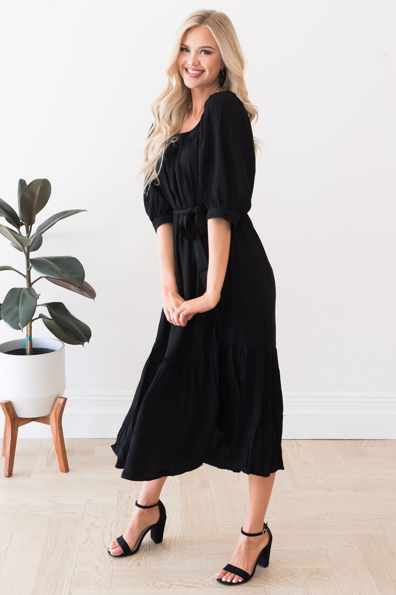 Another classy maxi dress is here to steal the show! We are obsessed with the gorgeous puff sleeves on this beauty! This dress features a square neckline, belt tie waistline and a full flowy tiered skirt. This is going to be perfect for all those special occasions you have coming up in your life!