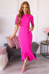 The lovely Ynez has us swooning over here! The classic mermaid style paired with short sleeves & the gorgeous pink textured crepe fabric had us at hello! Get yours today, these won't last long!