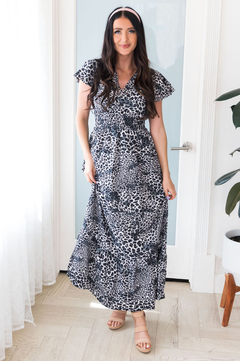 The gorgeous Yolana dress has arrived! Trust us when we say you are going to want to add to cart now because this darling dress will sell out quickly! Features include classy animal print, short ruffle sleeves and a ruffle hem skirt.