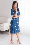 We are always looking for the most darling modest embroidered dresses! We simply can not get enough and the Yuliya is no exception! Grab this darling navy & ivory beauty today!
