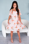 How fun and flattering is our new, modest, Zaila Dress! This cute dress is easy-to-wear and so comfortable. Featuring a square neckline, short bubble sleeves, flowy floral and the perfect length skirt.