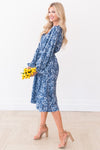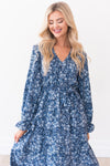 The Zaylee dress is absolutely stunning! The modest tie waistline and long puff sleeves have this dress ready for an occasion! Ruffled sleeves and soft V-neck are the perfect duo! The navy, light blue, and ivory floral pattern are perfect for this spring!