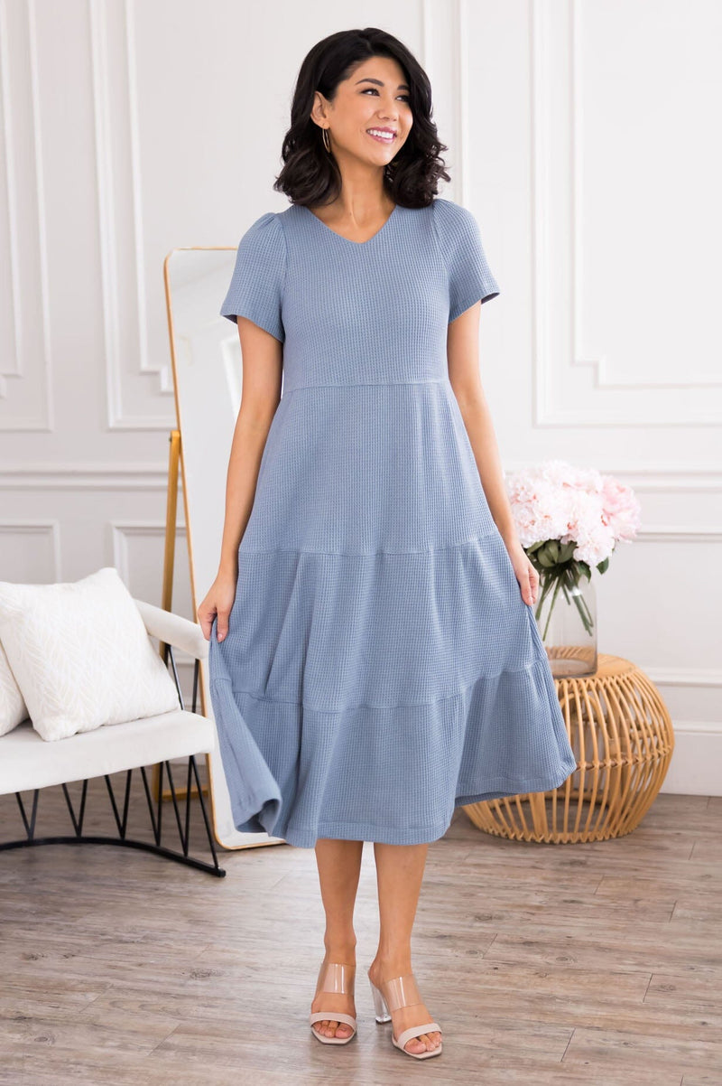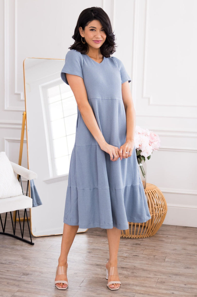 Our new Zoee dress is seriously perfection! The feminine and cozy waffle fabric on this dress is a dream come true! Features a soft v-neckline, short sleeves, pockets and a flow tiered skirt. Say yes to this dress, we promise you won't regret it!