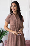 The Zuri is a dreamy perfect for Fall dress! The lovely textured fabric stole our hearts! Featuring a functional button front, collared neckline, short sleeves and a perfect length skirt. Imagine pairing this with your favorite hat and sweater this upcoming Fall season.