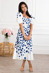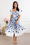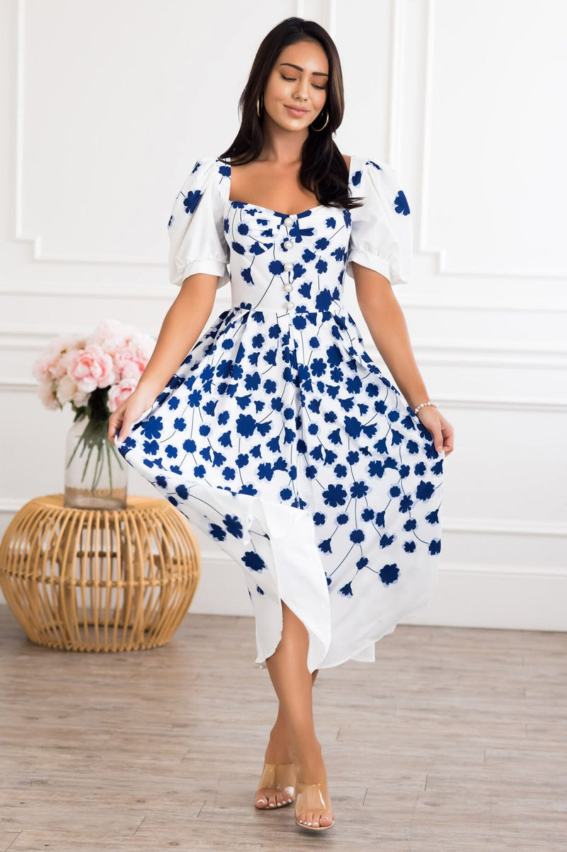 Our new Zye dress is the perfect piece for your closet! We adore the beautiful unique floral print, feminine sweetheart neckline and pearl faux button bodice slip on style, trendy short puff sleeves and flowy tea-length skirt. This gorgeous dress ever let you down, get yours today!