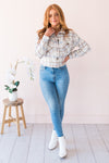 Our Trendy In Plaid cropped jacket is so darling! This jacket is the perfect pair with everything! Your favorite dresses, skirts, jeans, you name it! This plaid combo is a gorgeous must have for every wardrobe!