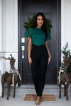 This feminine crochet lace sleeve top is perfect day or night! Featuring gorgeous comfortable fit fabric, modest round neckline and darling short lace sleeves. This blouse pairs so well with everything, get yours today!