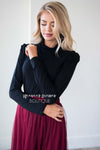 This new top is perfect to pair with any outfit! It will create a sleek classy look for any occasion! Black top features a turtle neck with a lace yoke and long sleeves!