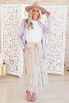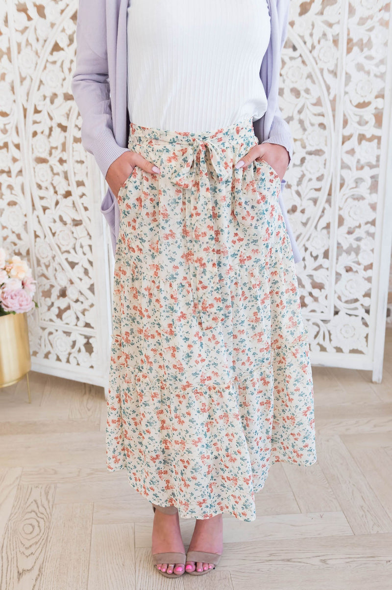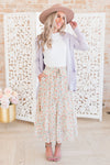 We can't get enough of our newest Waiting On Spring skirt! They are so flattering on every body type, and are perfect for any occasion! They have all the best features, such as an elastic band waist, pockets, perfect tiered maxi length and feminine floral design. Make sure to get this darling skirt for your Spring wardrobe!