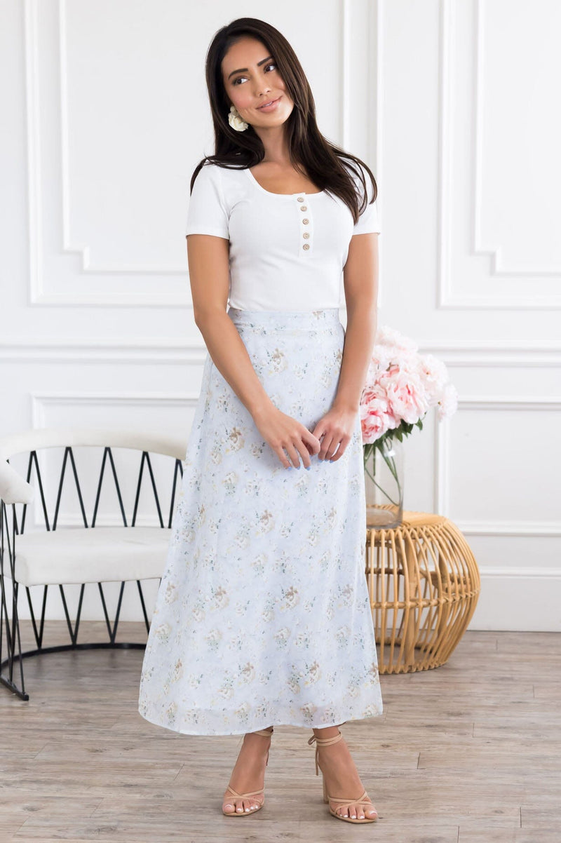 Your wardrobe needs this chiffon skirt! This beauty features a classy watercolor floral print, comfortable elastic waistline and a perfect for all length. This one will be a hit with everyone, get yours today you will not regret it!