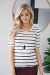 White Striped Scoop Neck Top