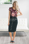 This is the perfect go-to top! Pair it with your favorite pair of jeans or skirt, you cannot go wrong! This wine floral chiffon top features a rounded neck line and tulip sleeves!